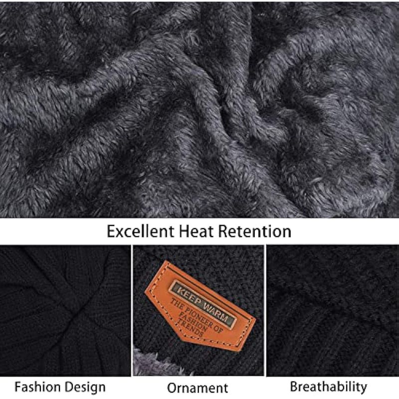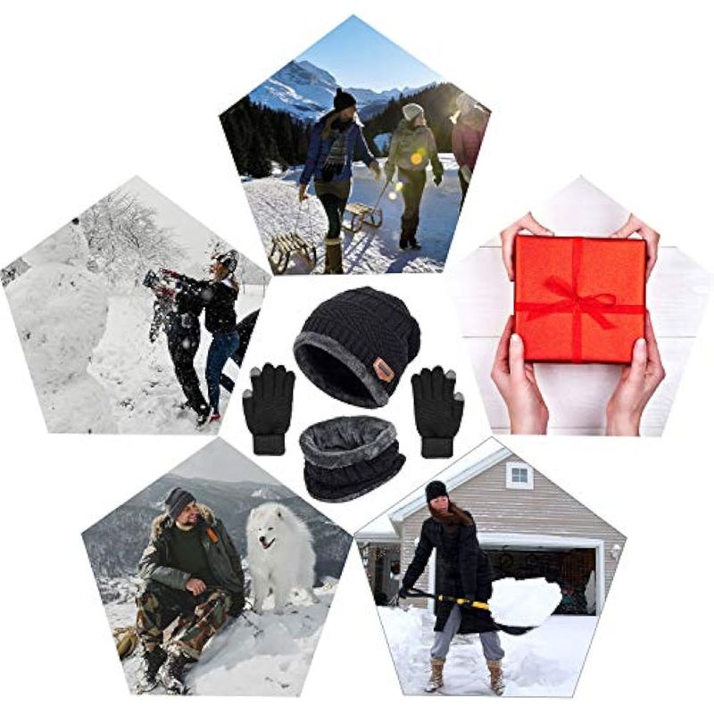Conjunto de guantes de punto de invierno, gorro de punto para calentar el cuello, gorro de calavera