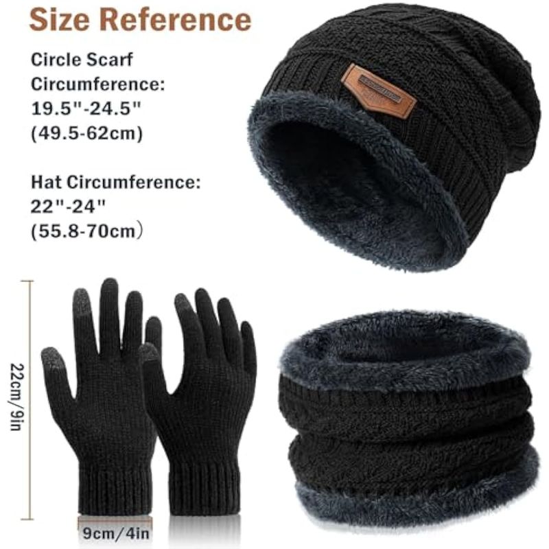 Conjunto de guantes para pantalla táctil, gorro de invierno con forro polar grueso, calentador de cuello para hombres y mujeres