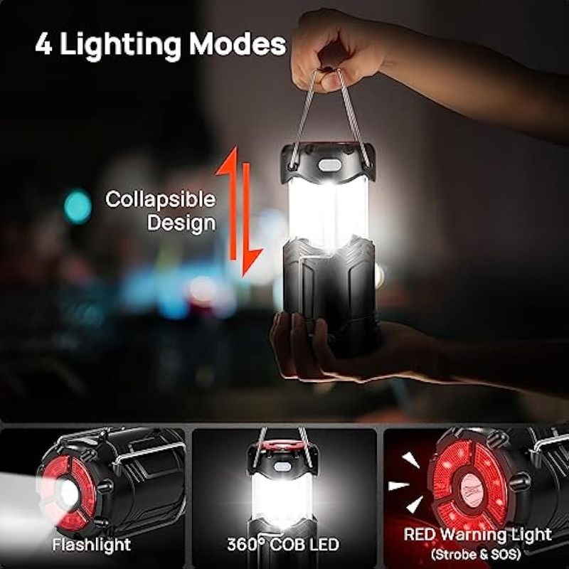 Consciot - Paquete de 2 linternas LED plegables para campamento, recargable por USB C y funciona con