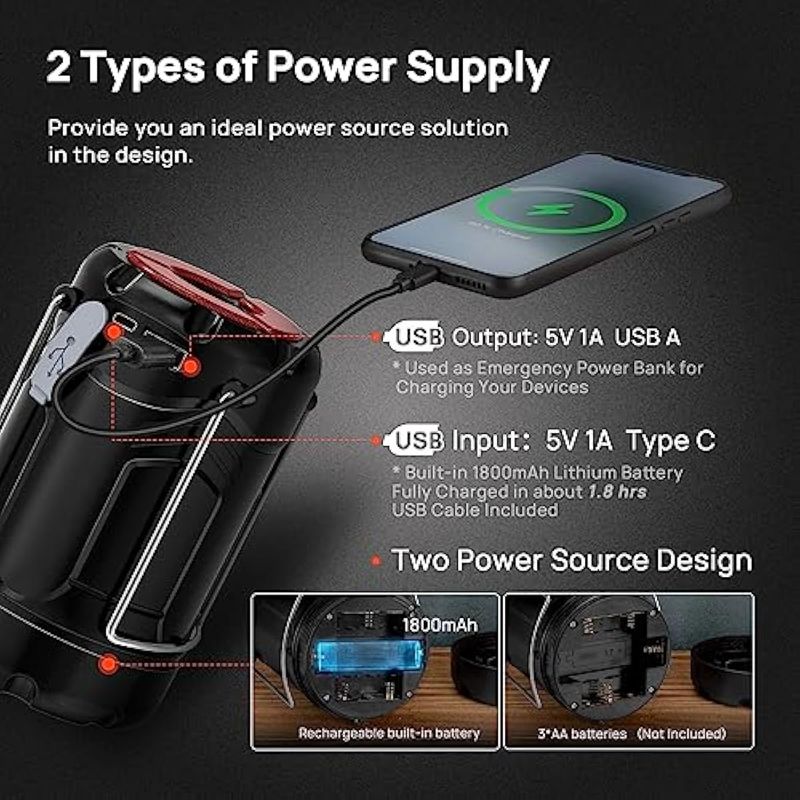 JARDÍNCAMPINGLINTERNASConsciot - Paquete de 2 linternas LED plegables para campamento, recargable por USB C y funciona con