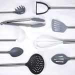 HOGARBAZARUTENSILIOS DE COCINACook With Color Juego de utensilios de cocina de nailon de 10 piezas con soporte, herramientas de