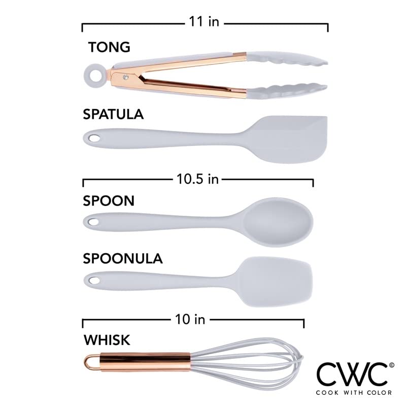 Cook with Color Utensilios de cocina de silicona, juego de utensilios de cocina de 5 piezas,
