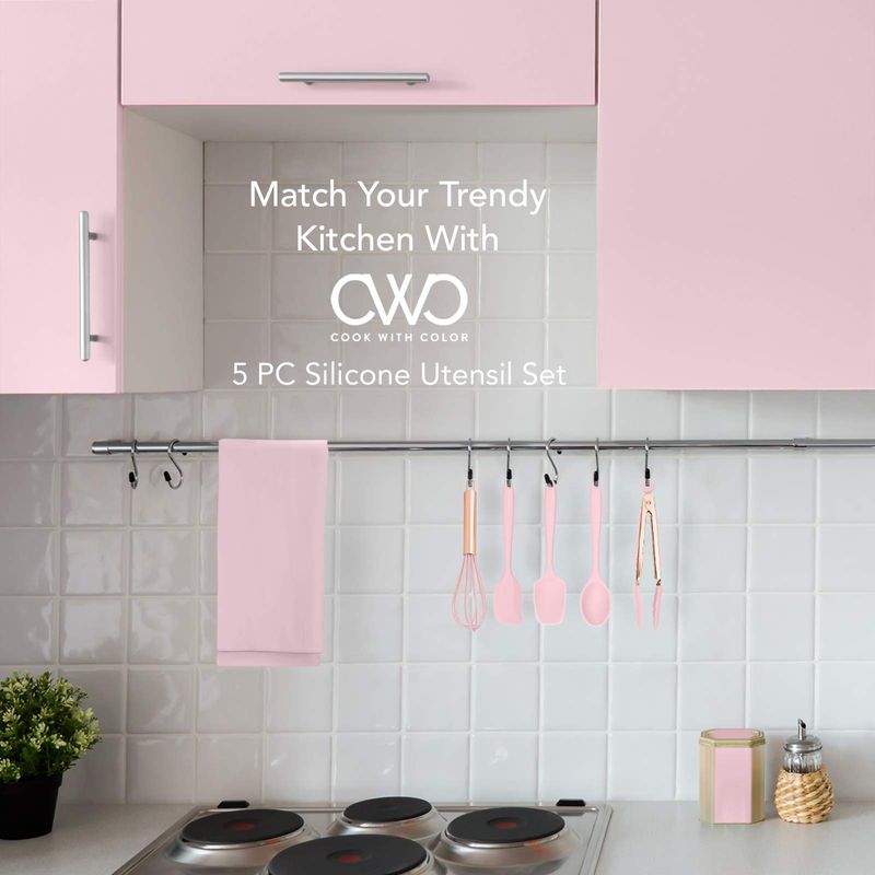 Cook with Color Utensilios de cocina de silicona, juego de utensilios de cocina de 5 piezas,