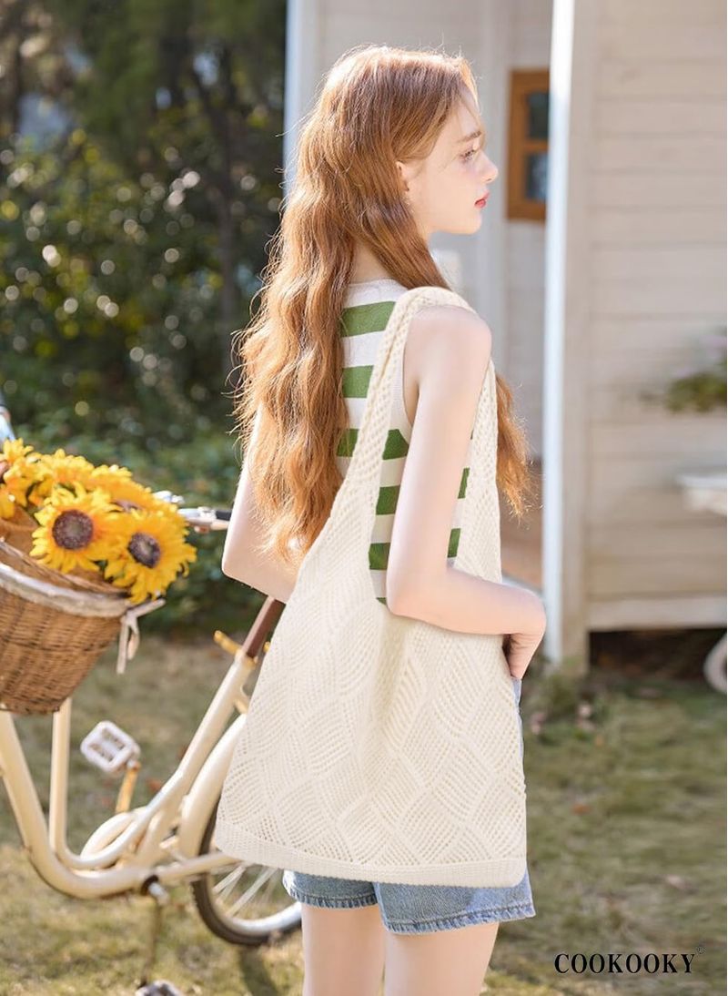 COOKOOKY Bolsa de playa de ganchillo para mujer, bolsa de playa de verano para mujer, bolsa de malla
