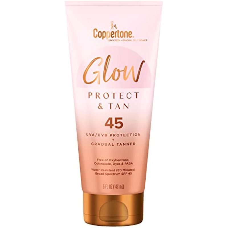 Coppertone Glow Protect and Tan Sunscreen Lotion + Gradual Self Tanner, SPF 45 Sunscreen, 5 Fl Oz
