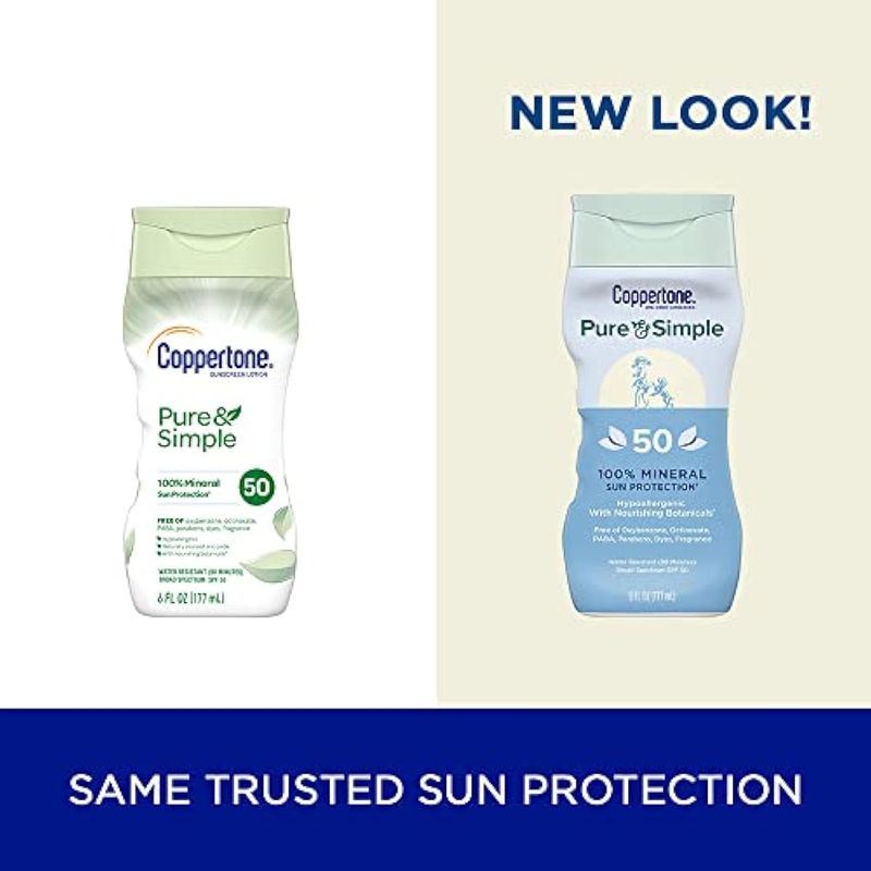 Coppertone Loción solar mineral de óxido de zinc puro y simple SPF 50, protector solar corporal,