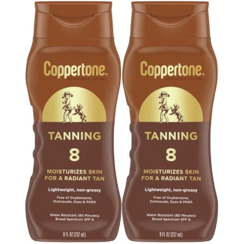 COPPERTONE TANNING SUNSCREEN LOTION, WATER RESISTANT BODY SUNSCREEN SPF 8, BROAD SPECTRUM SPF 8 SUNSCREEN PACK, 8 FL OZ BOTTLE, PACK OF 2