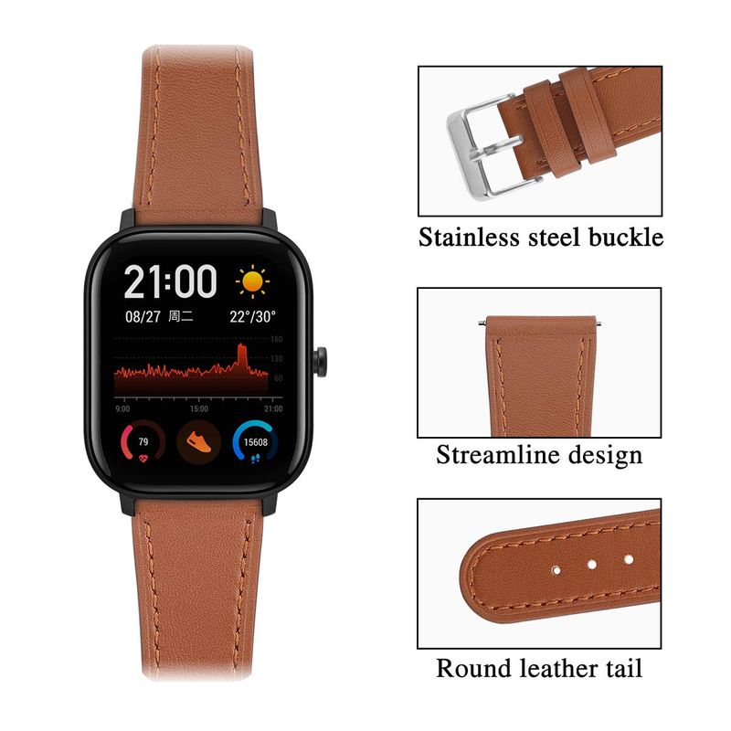 CORREAS DE RELOJ DE CUERO GENUINO DE 0.787 IN COMPATIBLES CON AMAZFIT BIP U PRO/BIP S LITE/BIP 3/BIP 3 PRO, CORREA DE REPUESTO PARA RELOJ AMAZFIT GTS/GTS 2/GTS 2E/GTS 2 MINI/GTS 3/GTS 4 MINI/GTR