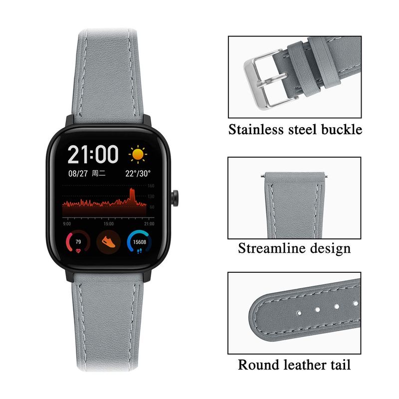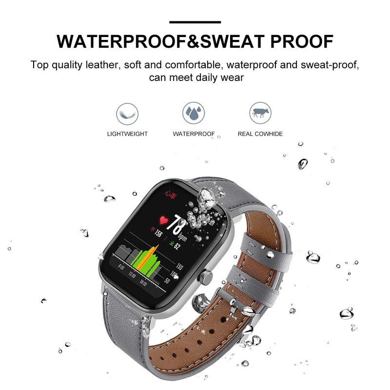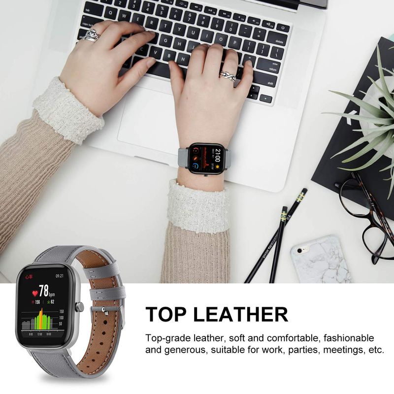 Correas de reloj de cuero genuino de 0.787 in compatibles con Amazfit Bip U Pro/Bip S Lite/Bip 3/Bip