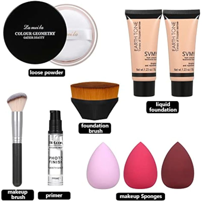 CORRECTOR DE CONTROL DE ACEITE MATE DE COBERTURA COMPLETA CON BASE LíQUIDA Y CEPILLO DE MAQUILLAJE Y ESPONJAS DE MAQUILLAJE
