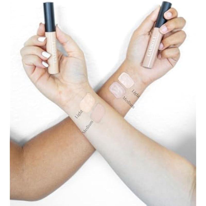 Gabriel Dual Powder Foundation and Cream Concealer empaquetado en una bolsa de cosméticos azul.