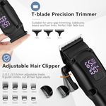 Kit profesional de aseo para hombres: el juego de cortapelos inalámbrico incluye cortapelos de barbero, recortadora de pelo y afeitadora de aluminio. El gran cortapelos inalámbrico con hoja ajustable 0.079-0.138 in que corta fácilmente todo tipo de cabello y longitudes. La recortadora de hoja en T puede manejar los detalles de tu cabello y barba facial, fácilmente para recortar con precisión, aseo, patillas, cuello, líneas de barba y afeitado. La afeitadora calva funciona bien en cabello denso, corto y grueso y la malla de hoja ultrafina proporciona un afeitado cerrado. Las cortadoras de cabello profesionales satisfacen todas tus necesidades de jardinería en casa
