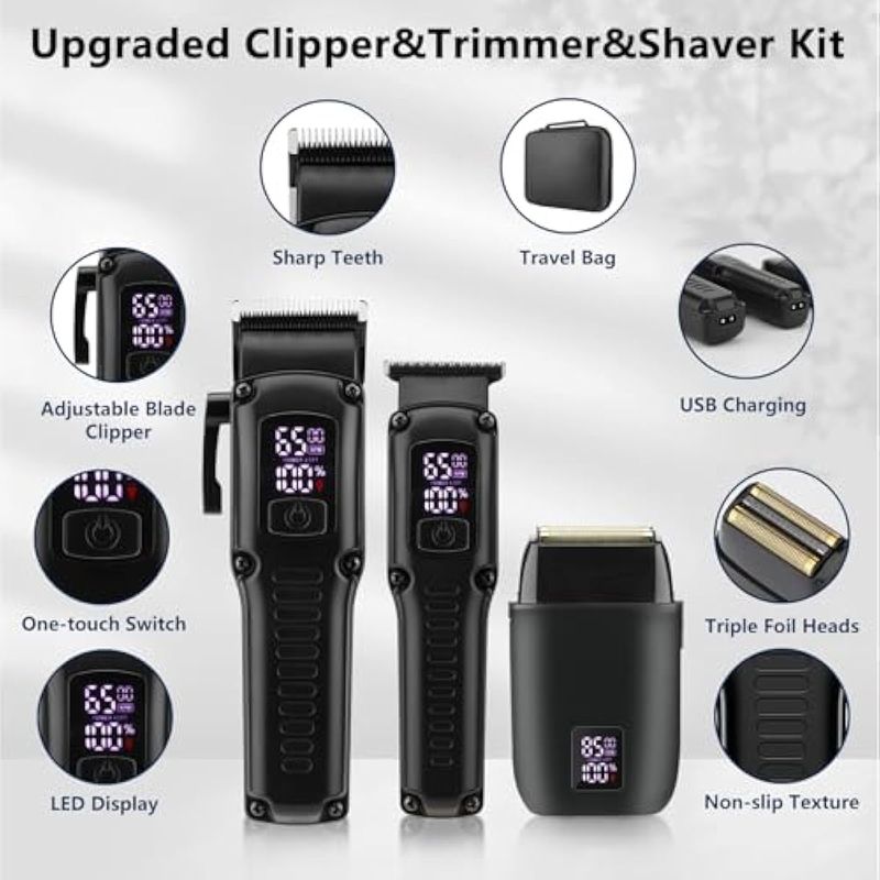 Batería de larga duración y pantalla LCD: nuestro kit de afeitado para hombres tiene una alta capacidad 2000 mAh, 1500 mAh, 600 mAh. Las cortadoras de bordes se pueden utilizar durante 180 minutos después de 3 horas de carga, la recortadora de precisión puede funcionar durante 180 minutos después de 3 horas de carga, la máquina de afeitar obtiene hasta 90 minutos de uso inalámbrico después de la carga durante solo 2 horas. La pantalla LCD ultra clara puede recordarte que debes cargar a tiempo. Este juego de cortapelos premium es ideal para viajes, vacaciones, viajes de negocios, etc