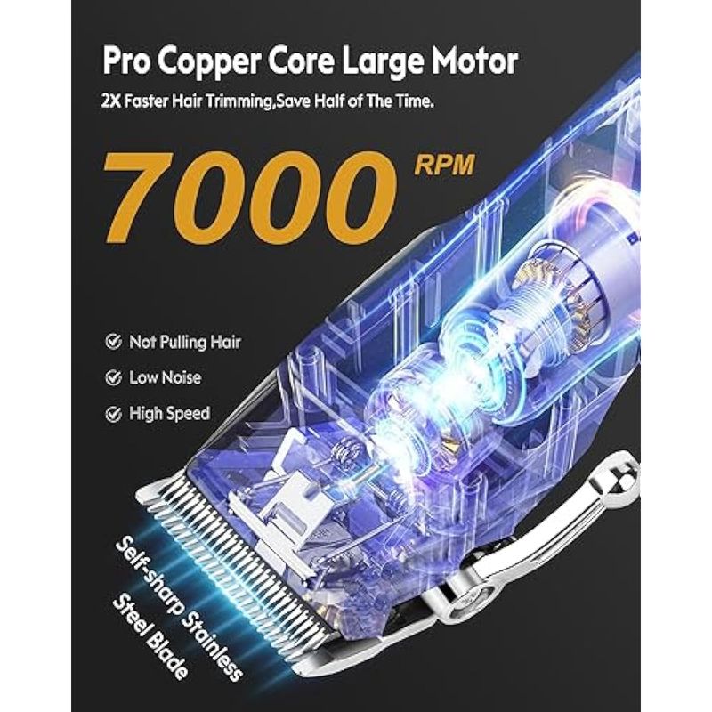 Cuchillas mejoradas equipadas con potente motor: cuchillas de acero de doble capa, lisas y no atascadas. Juego de recortadora y recortadora con muchos peines de diferentes longitudes el número representa la longitud del cabello reservada, incluso los principiantes pueden aprender fácilmente a cortar el cabello sin recorte excesivo o capas desiguales. Puedes elegir libremente la longitud del cabello. Fuerte potencia, hasta 7000 rpm, rendimiento estable y máquina de pelo cortado para hombres puede completar fácilmente una forma satisfactoria.