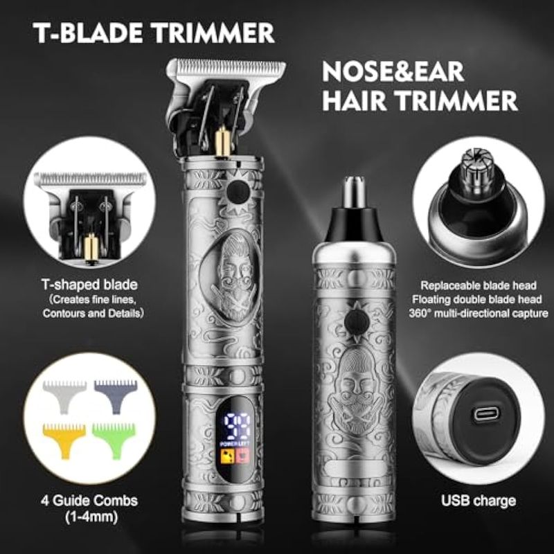CORTAPELOS PROFESIONALES PARA HOMBRES, CORTAPELOS, RECORTADORA DE HOJA EN T, AFEITADORA ELéCTRICA, JUEGO DE RECORTADORA DE PELO DE NARIZ, KIT DE CORTE DE PELO INALáMBRICO 4 EN 1, PANTALLA LCD,