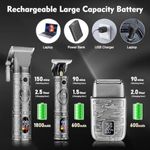 Pantallas LED y batería de gran capacidad: el juego de cortapelos para hombre tiene una pantalla LED integrada que indica cuándo debe cargarse tu cortapelos. El cortapelos cuenta con una batería recargable de iones de litio de alta capacidad que se carga durante 2.5 horas y proporciona hasta 150 minutos de tiempo de funcionamiento inalámbrico. Puerto de carga USB, puede conectar adaptador USB, portátil, cargador de automóvil.