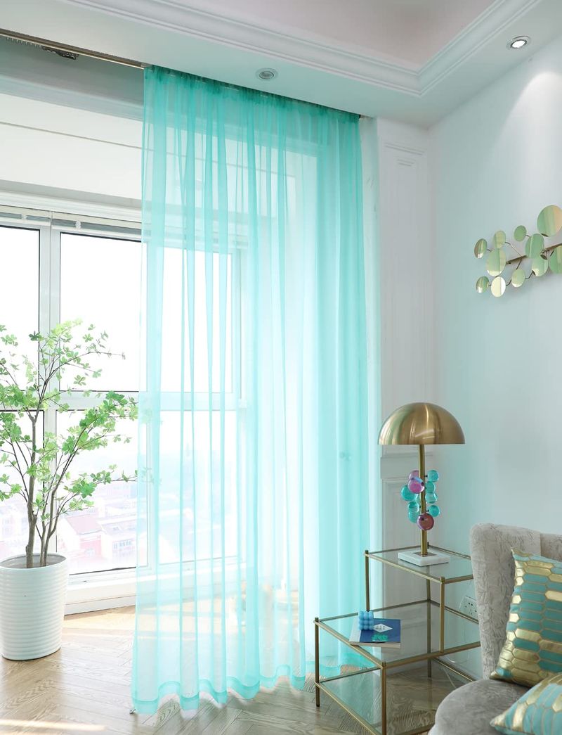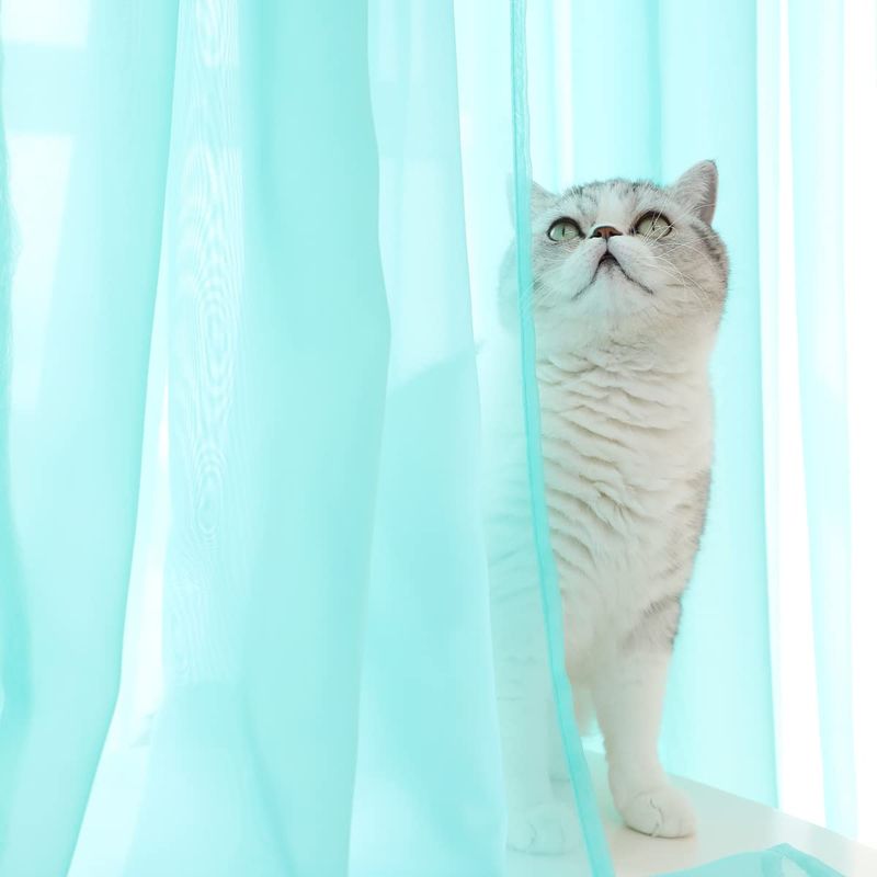 Cortinas traslúcidas blancas para ventana de 84 pulgadas de largo, juego de 2 paneles de cortinas