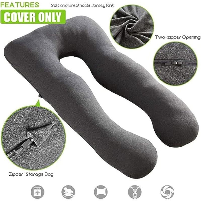 COSMOPLUS FUNDA DE ALMOHADA DE CUERPO COMPLETO EN FORMA DE U PARA MATERNIDAD, TELA DE JERSEY ELáSTICA Y TRANSPIRABLE, PROPORCIONA APOYO PARA DORMIR Y EMBARAZO, GRIS JASPEADO