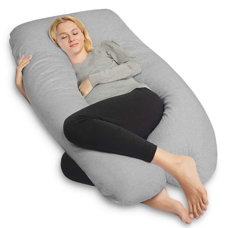 COSMOPLUS FUNDA DE ALMOHADA DE CUERPO COMPLETO EN FORMA DE U PARA MATERNIDAD, TELA DE JERSEY ELáSTICA Y TRANSPIRABLE, PROPORCIONA APOYO PARA DORMIR Y EMBARAZO, GRIS JASPEADO
