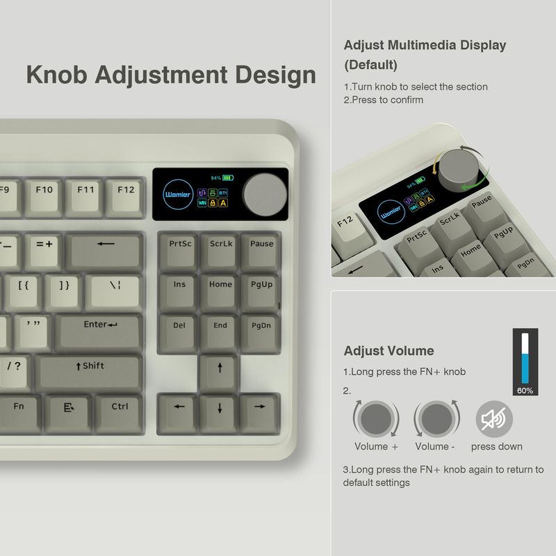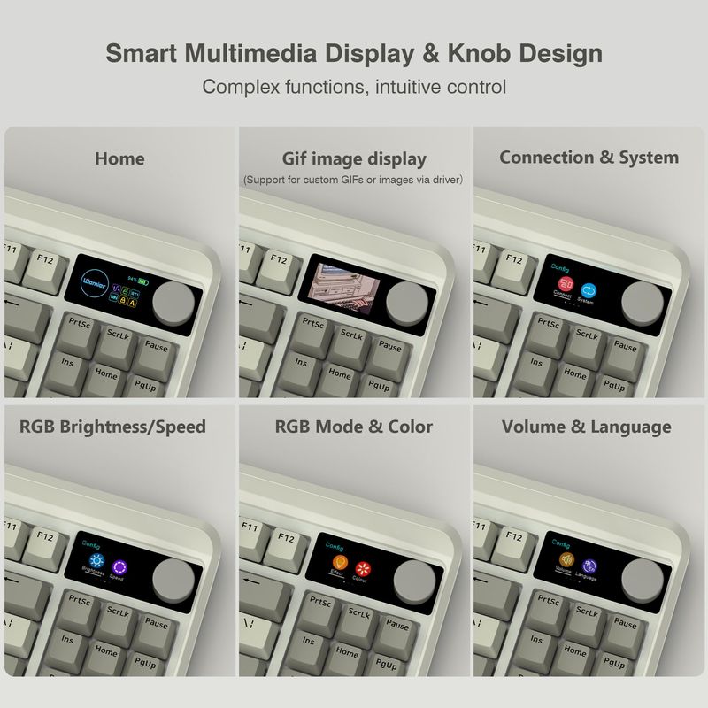 INFORMÁTICAACCESORIOS DE INFORMATICATECLADOSCOSTOM Teclado XVX al 75% con pantalla OLED a color y teclado mecánico de perilla, teclado mecánico