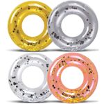 Flotadores inflables de alta calidad para niños y adultos: construido para durar de un verano a otro, el tubo inflable de confeti de oro rosa para adultos y niños es un flotador de anillo de piscina resistente hecho de vinilo de PVC de alta calidad. Fabricado con resistencia a los rayos UV y al desgarro para proteger las tumbonas inflables de la decoloración o grietas del color. Llamativo diseño de oro rosa con confeti brillante. Los tubos de flotador se pueden inflar por boca, bomba manual o bomba de aire.