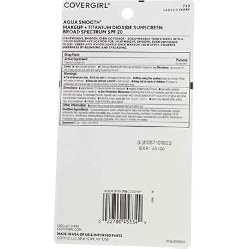 BELLEZA Y SALUDBELLEZA Y CUIDADO CORPORALMAQUILLAJECoverGirl Aquasmooth - Base de maquillaje compacta SPF 20, 710 Classic Ivory, 0.4 onzas