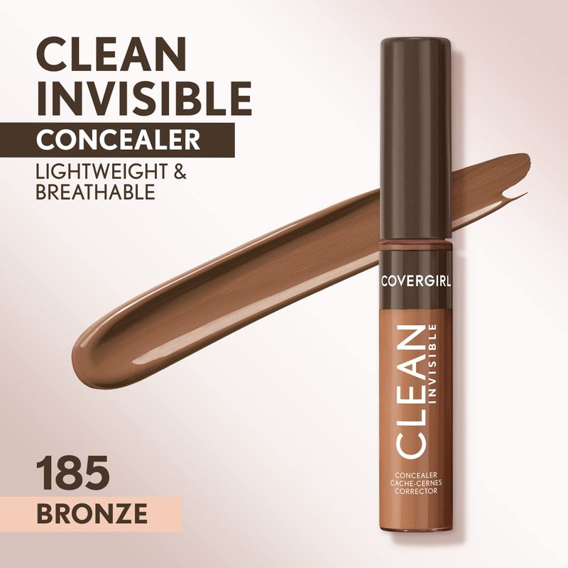 BELLEZA Y SALUDBELLEZA Y CUIDADO CORPORALMAQUILLAJECovergirl Corrector invisible limpio, ligero, hidratante, fórmula vegana, bronce 185, 0.23 onzas