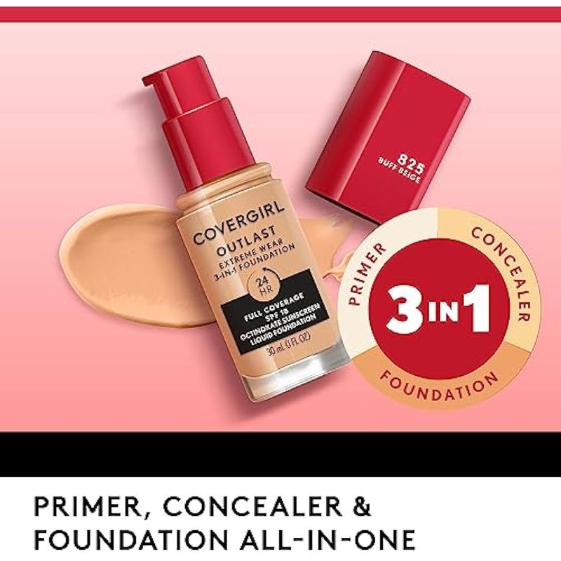 Covergirl Outlast Extreme Wear - Base líquida 3 en 1 de cobertura completa, SPF 18 protector solar 1