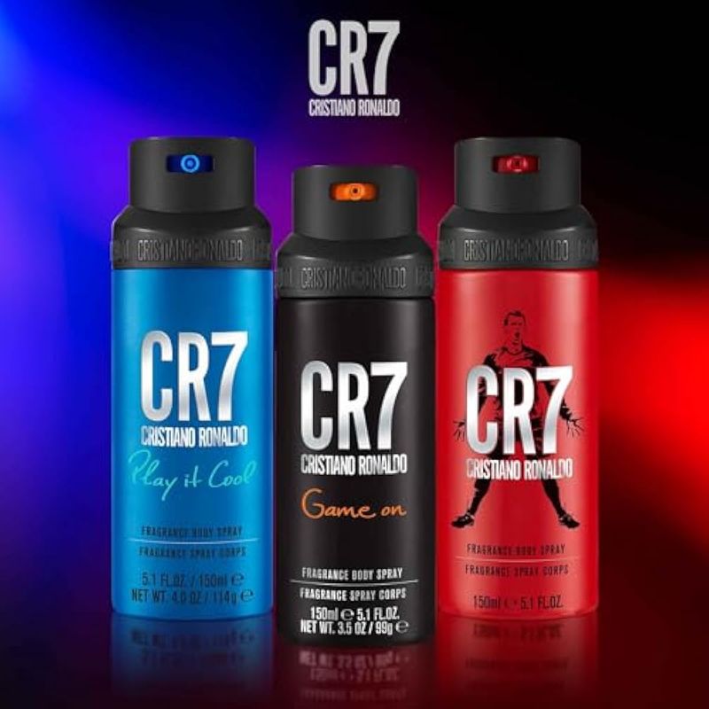 Fragancia intensa desatada. El spray corporal CR7 Play It Cool llega con vibrantes notas altas de mandarina, bergamota y pera, con notas medias frescas de lavanda, cardamomo y acuerdo marino, secándose a una base seductora de madera de ámbar, tonka y almizcle.