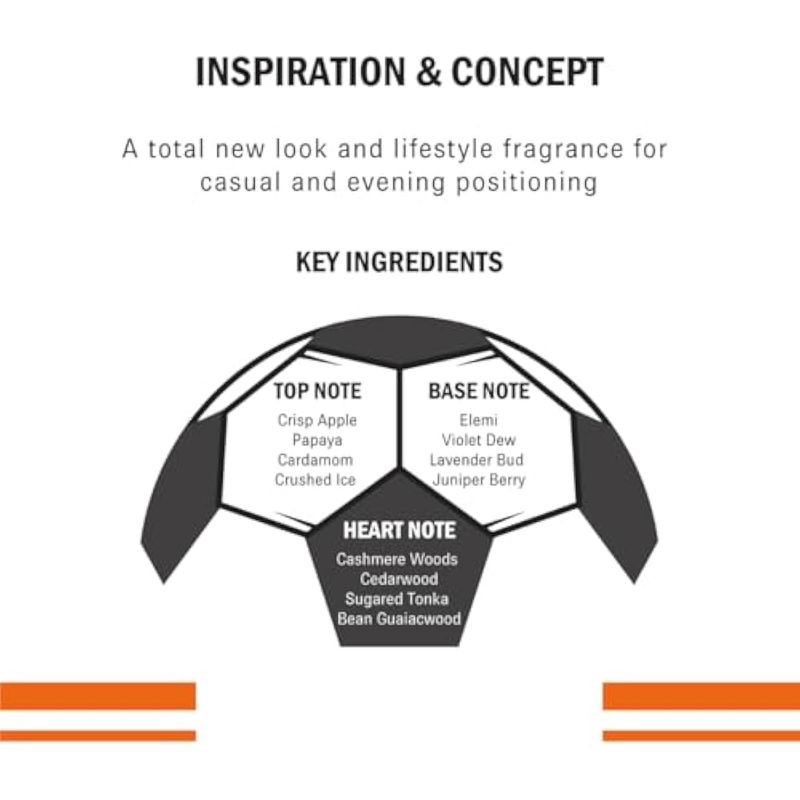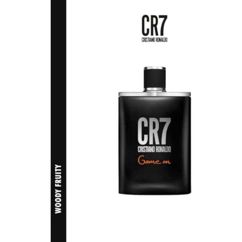 CR7 Game On de Cristiano Ronaldo es una fragancia aromática amaderada para hombres. Destaca con fuertes notas amaderadas y la dulzura de las frutas en una mezcla adictiva. Con notas altas de manzana crujiente, papaya, cardamomo y hielo triturado que se acomodan en un corazón de Elemi, Violet Dew, Lavender Bud, y Juniper Berry. La fragancia se funde en una base de madera de cachemira, madera de cedro, tonka azucarada y madera de frijol guayaco.