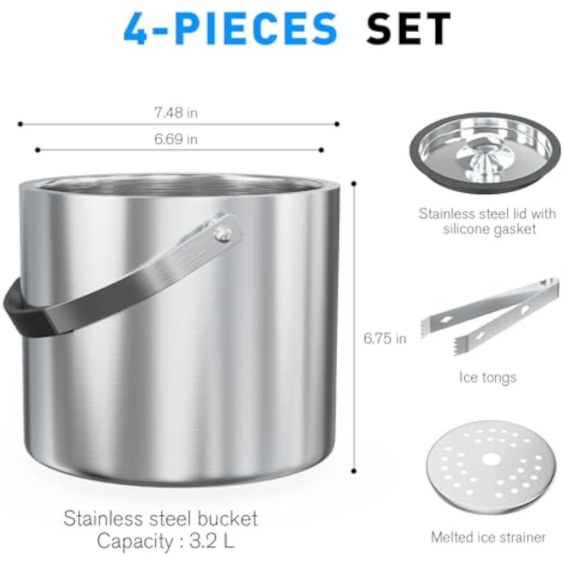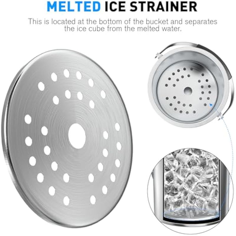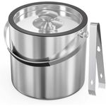 HOGARBAZARUTENSILIOS DE COCINACubo de hielo de 2.2L con tapa de silicona, colador, pinzas, cubo de hielo de acero inoxidable con