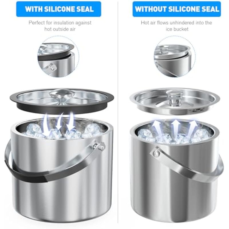 Cubo de hielo de 2.2L con tapa de silicona, colador, pinzas, cubo de hielo de acero inoxidable con