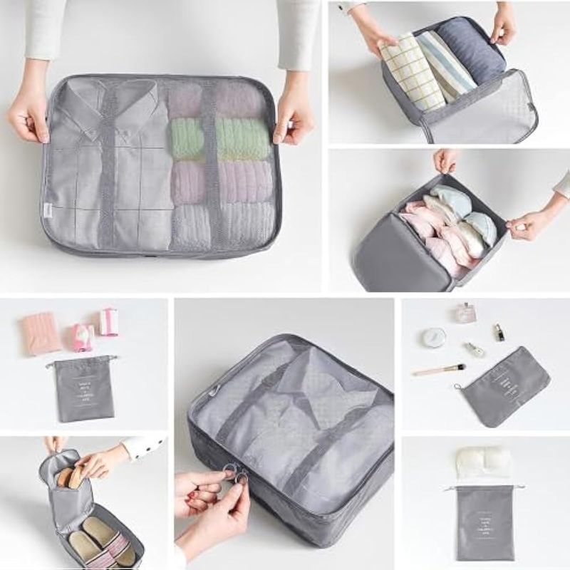 CUBOS DE EMBALAJE PARA MALETAS, ORGANIZADORES DE EQUIPAJE DE VIAJE, 8 JUEGOS DE ARTíCULOS ESENCIALES DE VIAJE PARA ACCESORIOS DE VIAJE, BOLSA DE ZAPATOS, BOLSA DE TIOLETRY BOLSA DE LAVANDERíA