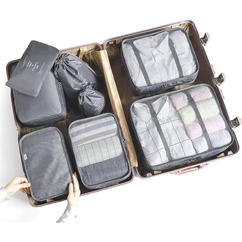 Bolsa de viaje de gran capacidad: juego de 8 bolsas esenciales de viaje en diferentes tamaños para organizar ropa ordenada, ropa interior, zapatos, cosméticos, artículos de tocador o accesorios electrónicos. Un gran compañero para viajar