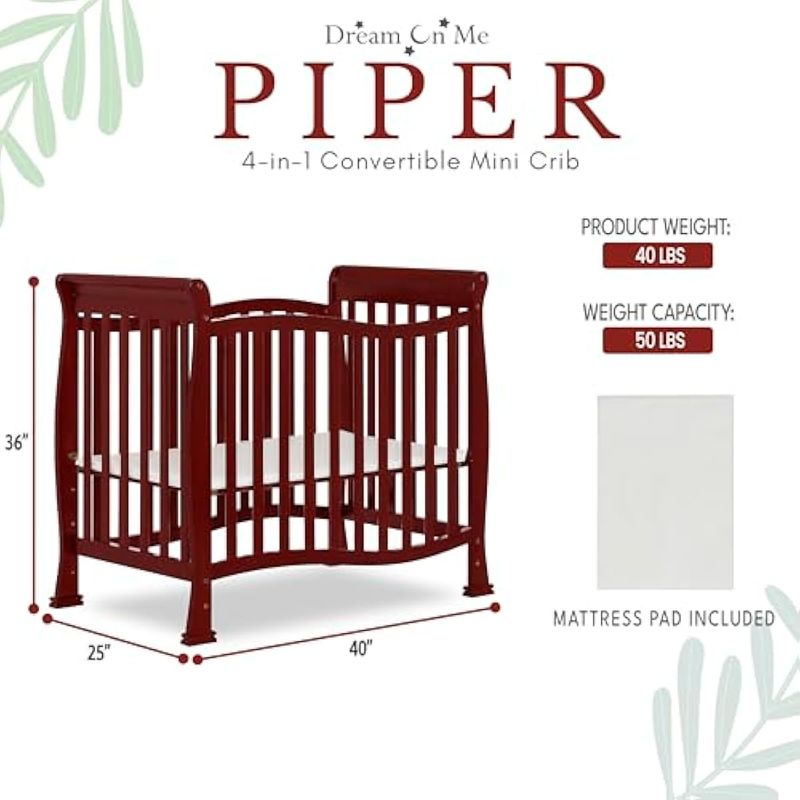 Cuna convertible 4 en 1 Piper, de Dream On Me, Cuna, Cereza