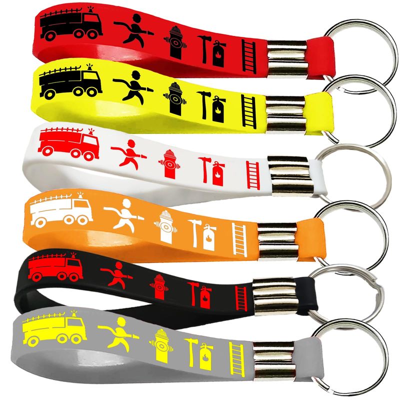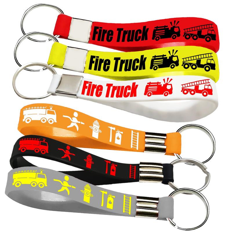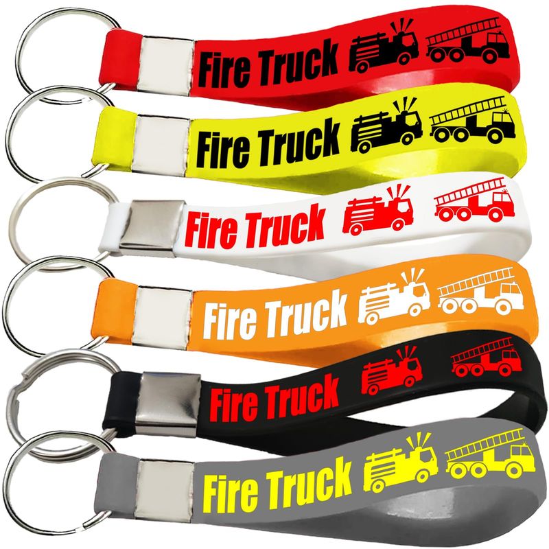 RODADOSHERRAMIENTAS PARA AUTOCupaPlay 24 llaveros de goma para camiones de bomberos, suministros de fiesta de camiones de