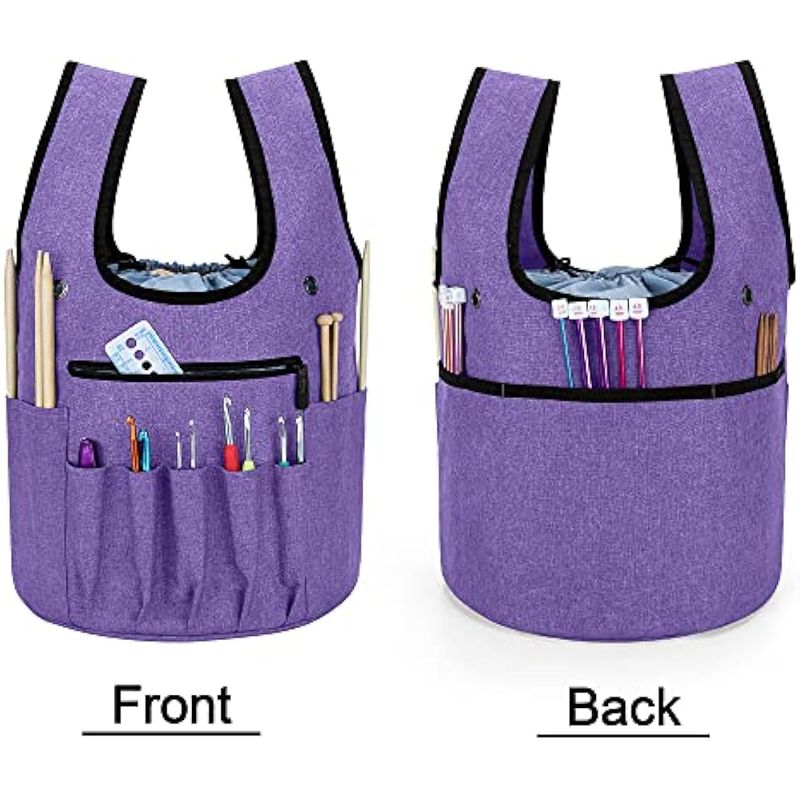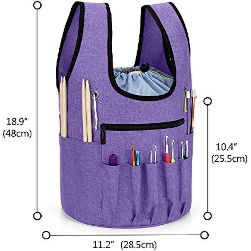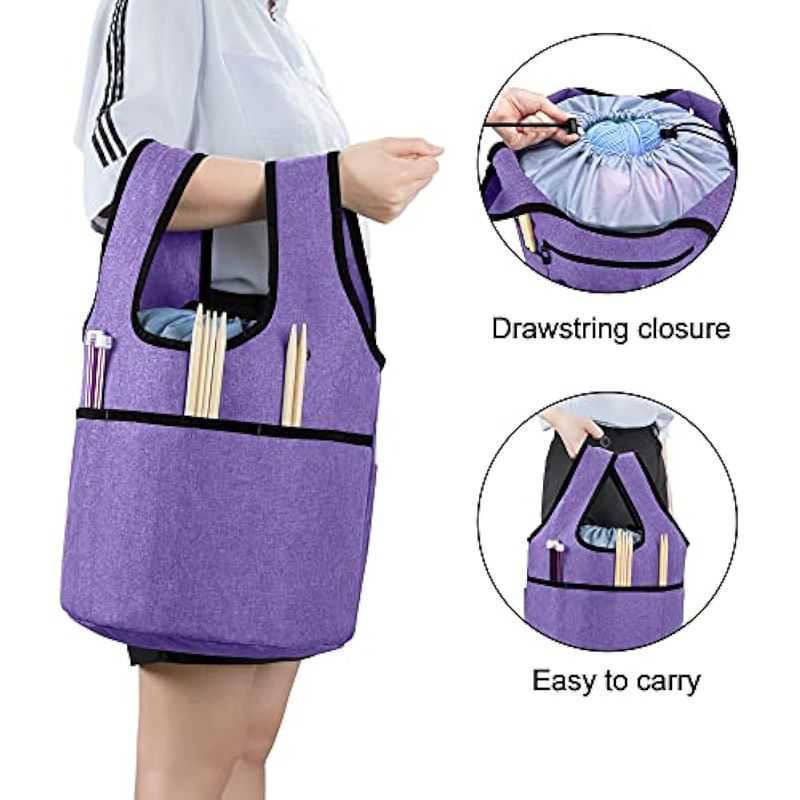 CURMIO Bolso de mano para tejer, bolso de mano con cordón para agujas de tejer, ganchos de ganchillo