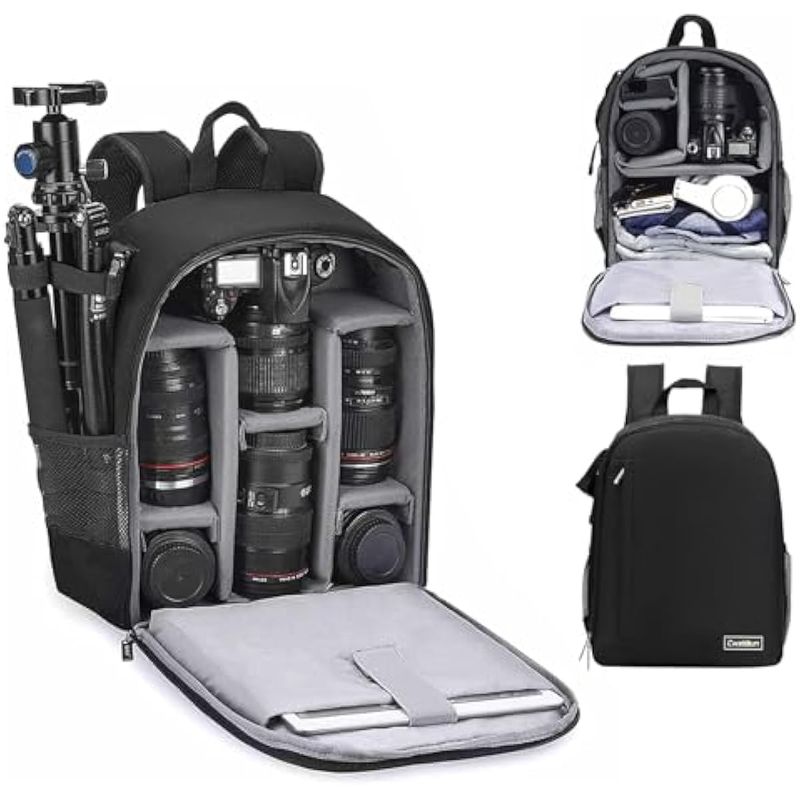 Cwatcun Mochila profesional para cámara SLR DSLR sin espejo, funda impermeable compatible con cámara