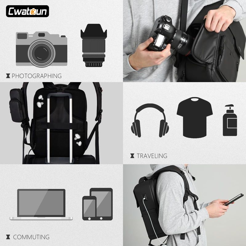Cwatcun Mochila profesional para cámara SLR DSLR sin espejo, funda impermeable compatible con cámara