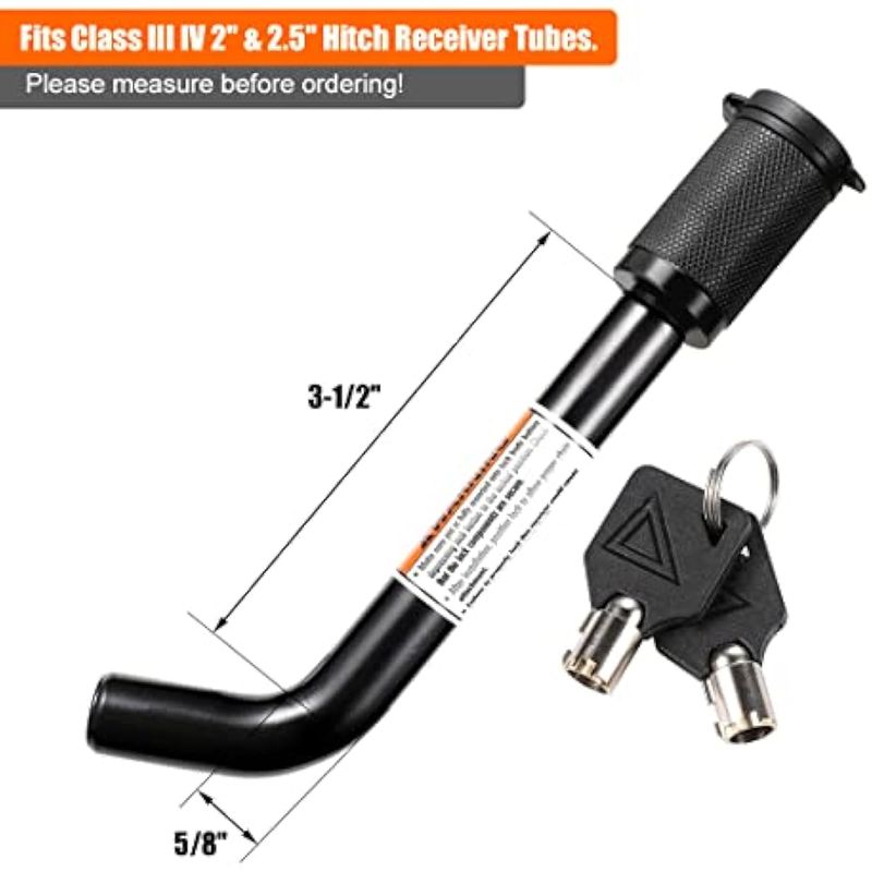 Diseño de pasador de bloqueo de enganche de remolque: diámetro de 58 pulgadas con longitud efectiva 3-12 3.5 pin doblado negro. Compatible con tubos receptores de enganche de clase III IV de 2 y 2-12 pulgadas. Comprueba la configuración de tu enganche antes de realizar el pedido