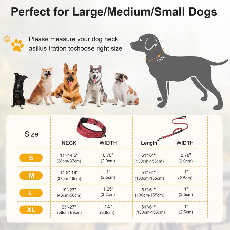 MASCOTASPERROSAccesorios para PerrosDAGANXI Collar para perro, ajustable, de neopreno suave, acolchado, transpirable, con tira