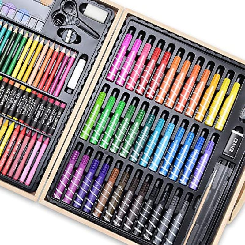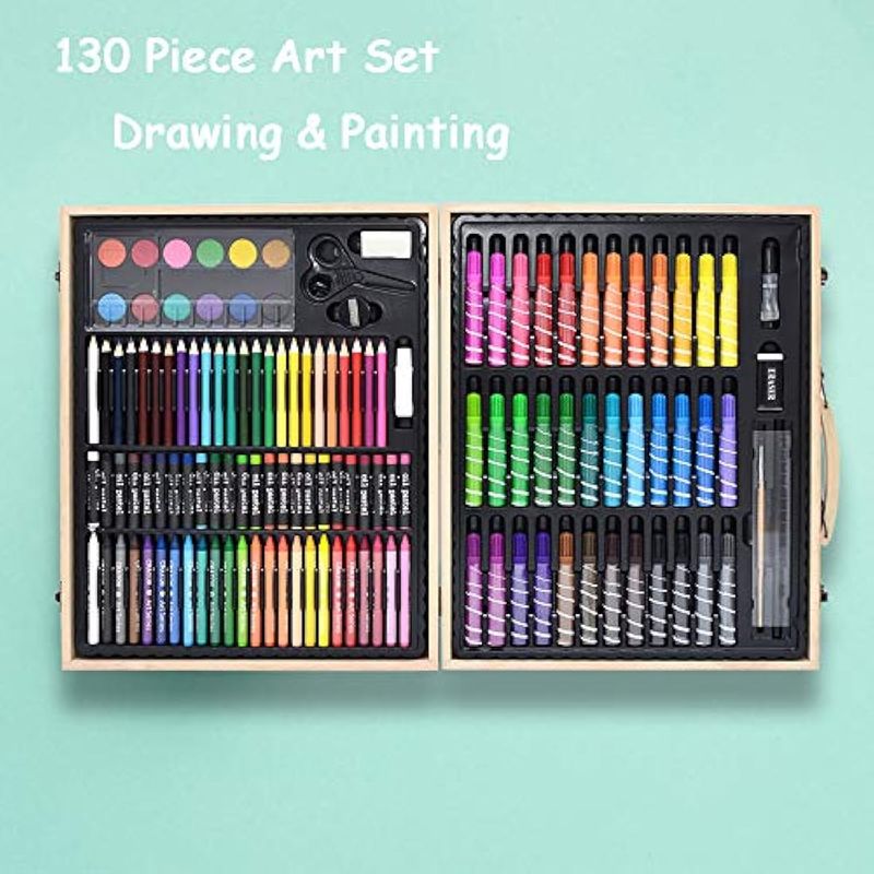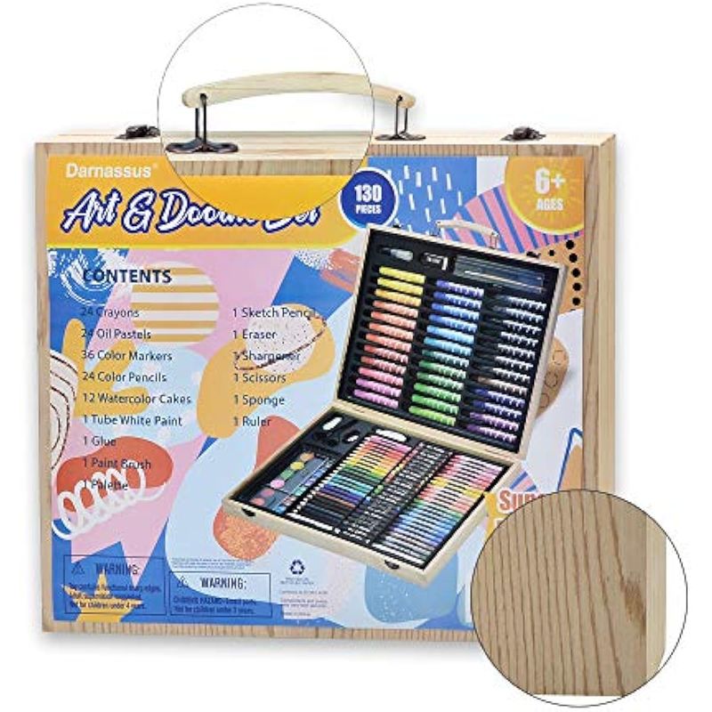 Darnassus Juego de arte de 130 piezas, juego de colores profesionales de lujo, con estuche de madera