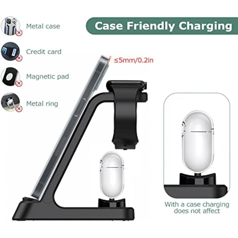 Estación de carga inalámbrica 3 en 1: estación de carga inalámbrica 3 en 1 con un cargador de reloj incorporado, no más problemas de cables enredados y ahorra costos. Es compatible con tu teléfono iPhone o Samsung Galaxy, Apple Watch y AirPods cargando al mismo tiempo. Además, te permite cargar en modos vertical y horizontal, proporcionando una vista cómoda para ver videos, chats de video, etc.