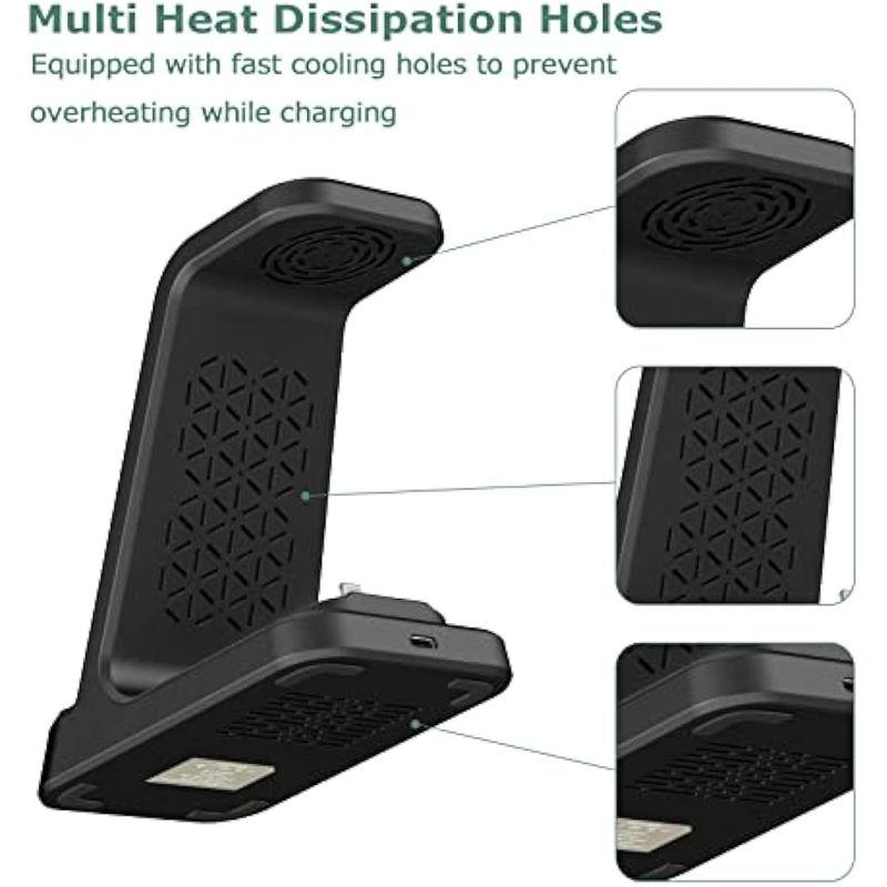 DDUAN ESTACIóN DE CARGA INALáMBRICA, SOPORTE DE CARGA RáPIDA 3 EN 1, CARGADOR INALáMBRICO PARA IPHONE14/13/12/11/PRO/MAX/X/XS/MAX/XR/8 Y APPLE WATCH 8/7/SE2/AIRPODS1 2/PRO1 2 (ADAPTADOR QC3.0)