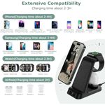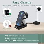 Carga segura y rápida: el soporte de cargador inalámbrico proporciona control de temperatura y protección de voltaje, muchos orificios de ventilación en la parte posterior, y almohadillas de silicona en la base y la parte inferior garantizan que su dispositivo no se deslice y se cargue de forma segura. Equipado con cargador QC3.0 de 18 W, solo 2-4 horas se carga completamente dependiendo del modelo de teléfono y reloj