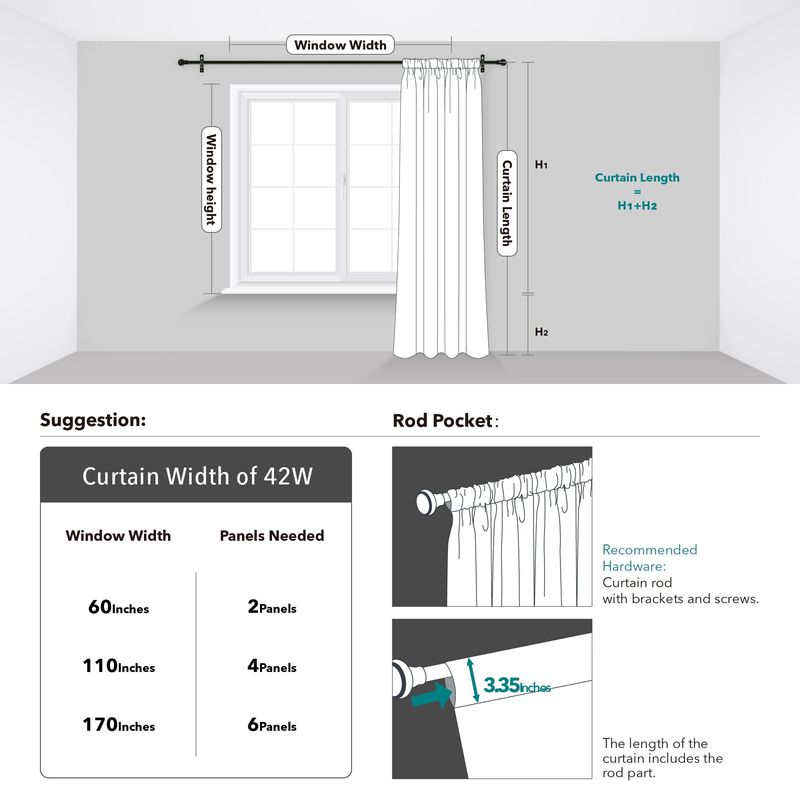 El paquete incluye un juego de 2 paneles de color gris, cada uno mide 42 pulgadas de ancho x 63 pulgadas de largo. Los paneles tienen dobladillos para el cortinero que pueden adaptarse a la mayoría de los tamaños de los cortineros. Complementa la decoración de tu sala de estar, dormitorio, oficina, comedor y más, con estas cortinas opacas decorativas.