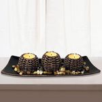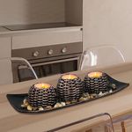 HOGARBAZARDECORACIONDecoración de mesa auxiliar, 3 portavelas con bandeja y rocas, decoración de mesa de centro de mesa