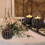 Decoración de mesa auxiliar, 3 portavelas con bandeja y rocas, decoración de mesa de centro de mesa