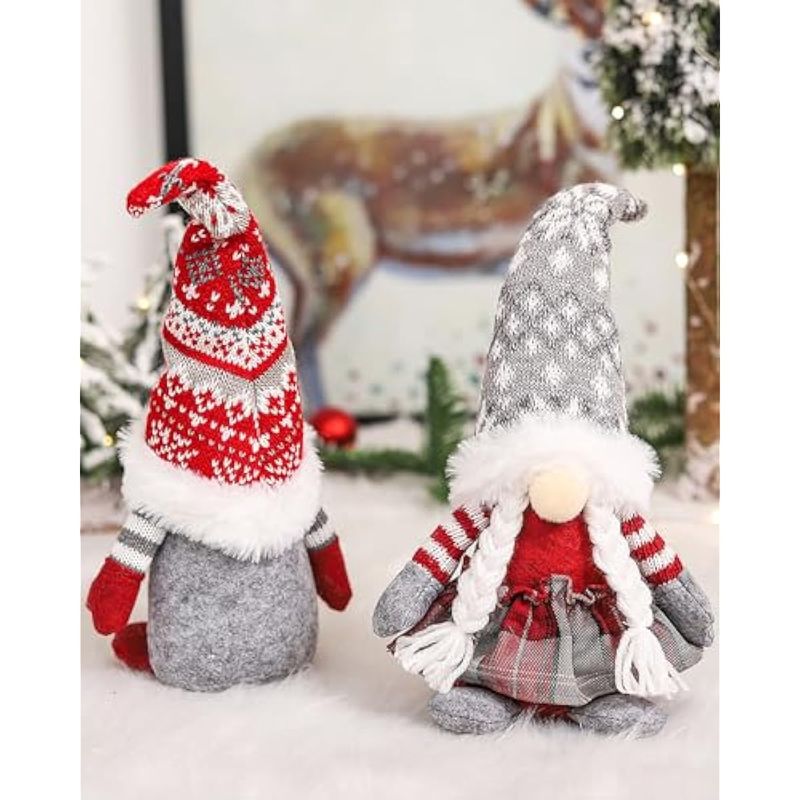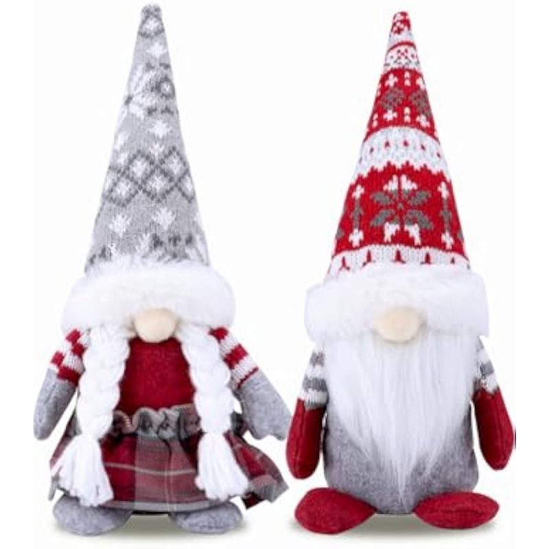 Decoraciones de gnomos de Navidad, paquete de 2 gnomos de Navidad hechos a mano sueco Tomte
