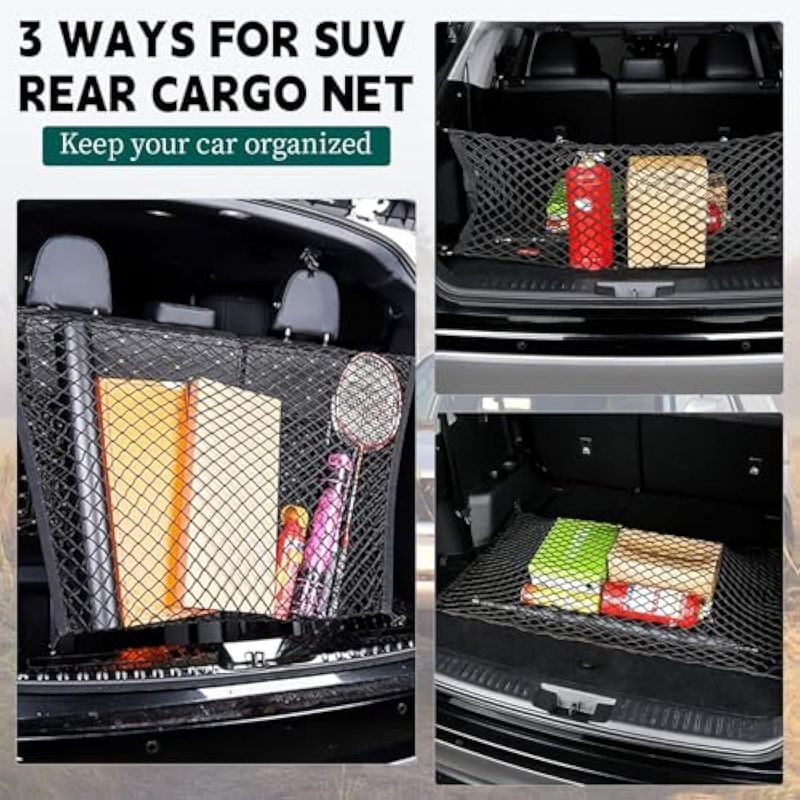 Esenciales para el maletero del automóvil: la red organizadora de almacenamiento para maletero de automóvil puede ayudar a almacenar alimentos, equipo, herramientas, accesorios de almacenamiento de vehículos u otros productos. Se adapta a la mayoría de automóviles, vehículos utilitarios deportivos y camiones. Es adecuado para propietarios de automóviles que viajan al aire libre, recorridos autónomos, etc
